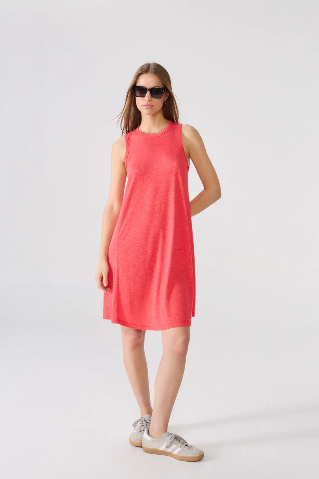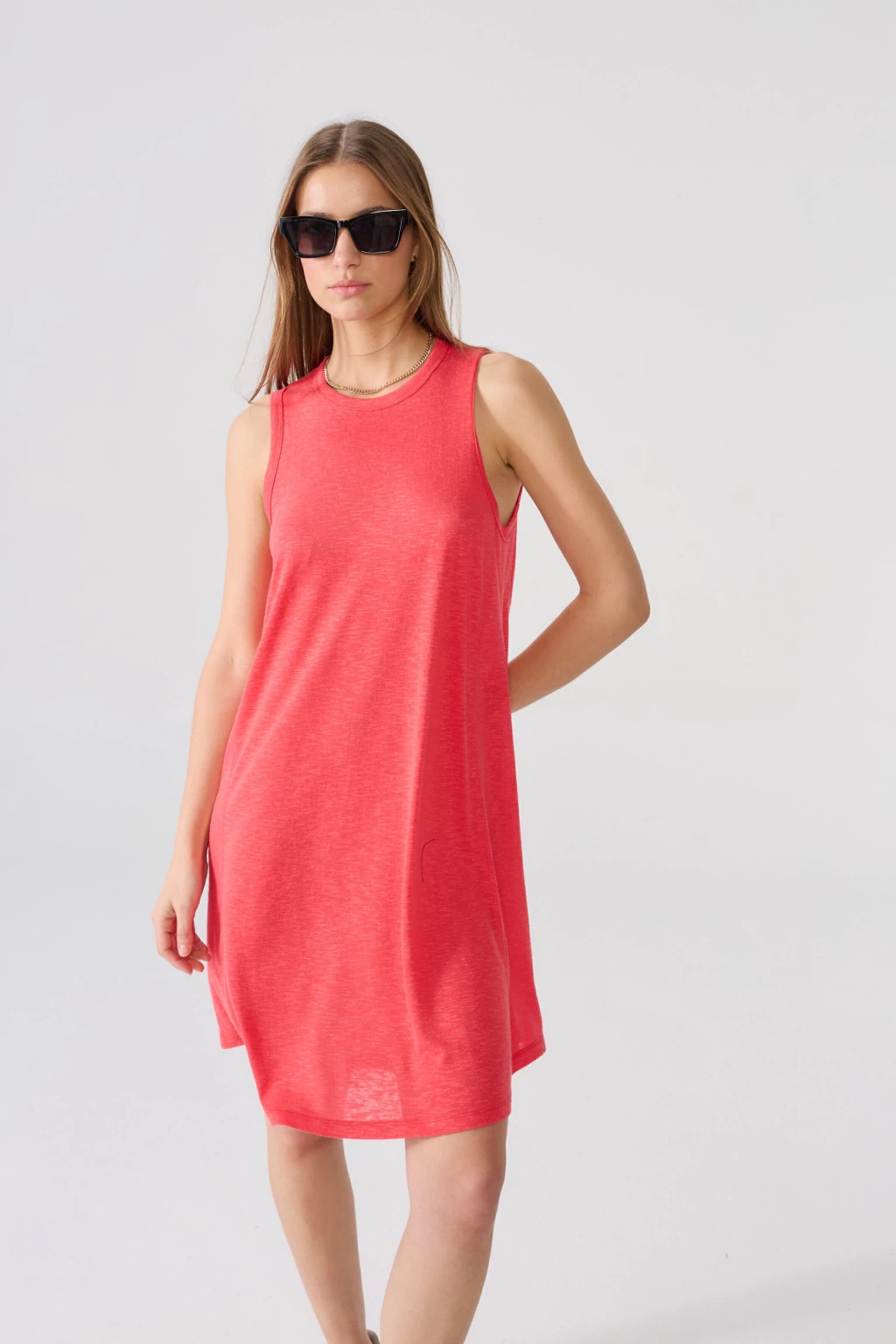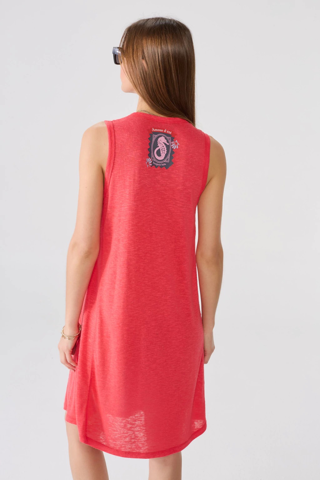 El Vestido Bali es la opción ideal para quienes buscan un look fresco y sofisticado. Confeccionado en jersey lino, este vestido corto musculosa destaca por su caída suave y comodidad. Su diseño se realza con una delicada estampa de caballito de mar en la espalda, aportando un toque único y elegante. Perfecto para días cálidos, combina calidad, estilo y distinción en cada detalle.