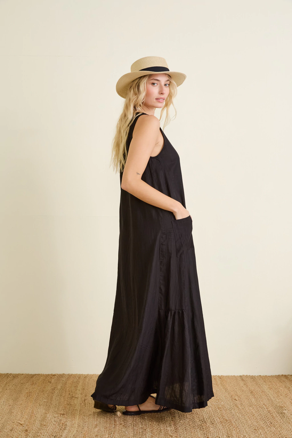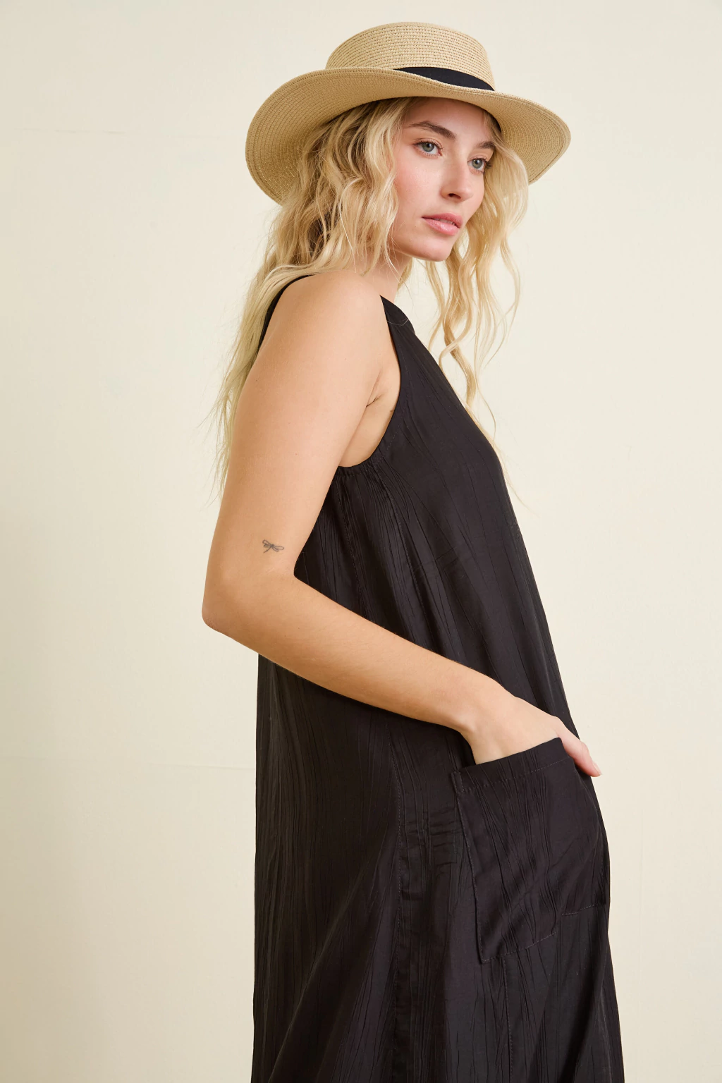 El Vestido Napoli es la opción ideal para quienes buscan comodidad y elegancia a diario. Confeccionado en tela plana de alta calidad, su caída favorece todo tipo de siluetas. Cuenta con prácticos bolsillos en los laterales, perfectos para llevar lo esencial sin perder estilo. Su diseño atemporal hace de este vestido una prenda versátil y sofisticada.